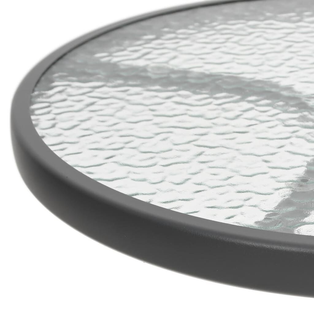 Enjoy a nice meal or afternoon tea in your outdoor space with this garden dining set! Featuring an elegant design, it will become the focal point of your garden and patio! Stable frame: The garden chair and table have a steel construction, making them sturdy and stable.Durable material: Thanks to the strong textilene fabric, these outdoor chairs are weather-resistant and easy to clean.Sturdy tabletop: The tabletop is made of glass, making it easy to clean. Additionally, the tabletop is perfect for placing snacks, drinks, vases, fruit bowls, or other decorative items.Comfortable seating experience: The ergonomic backrest and armrests give you a better seating experience. Good to know:To make sure your outdoor furniture stays beautiful, we recommend protecting it with a waterproof cover.