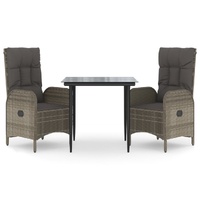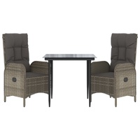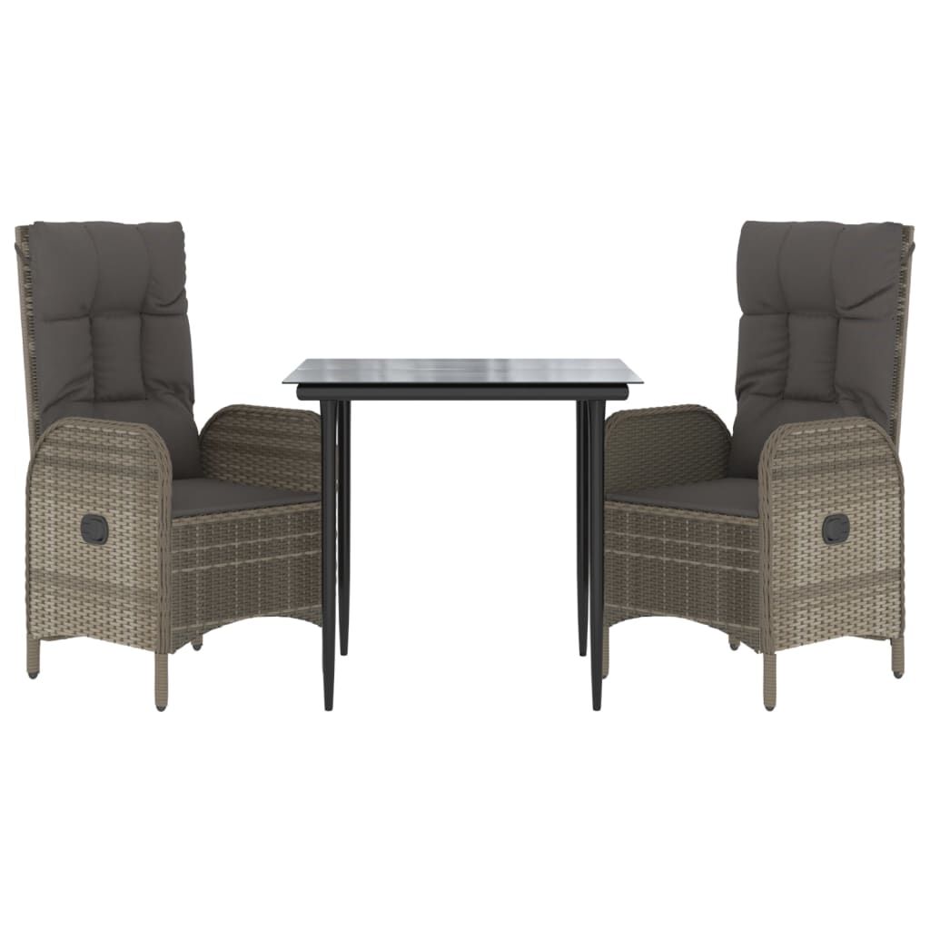 This trendy garden dining set, featuring an elegant and contemporary design, is a great choice for dining or relaxing in your garden. Weather-resistant material: PE rattan, also known as poly rattan, is weather resistant and easy to clean. It remains beautiful on the outside for a long period of time. It offers great quality, convenience and an aesthetic look.Sturdy frame: The powder-coated steel frames make the outdoor dining set sturdy and stable for daily outdoor use.Practical tabletop: The smooth tabletop of the garden table is made of tempered glass which is easy to clean with a damp cloth. Additionally, the sturdy tabletop is perfect for placing meals, drinks, and other decorative items.Reclining function: The garden chairs are specially designed with a reclining function so that you can adjust the backrest as per your comfort.Comfortable seat experience: The backrest adds extra seating comfort for the garden chair. Also, the thickly padded cushions provide comfort for your sitting time. Good to know:To make assembly as easy as possible, each product is delivered with a manual. Note:To make sure your outdoor furniture stays beautiful, we recommend protecting it with a waterproof cover.