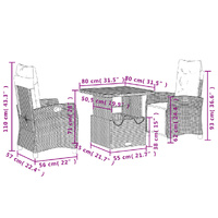This garden dining set is a great choice for al fresco dining or just relaxing in the garden, backyard, or on the patio. Durable material: PE rattan, also known as poly rattan, is a strong, low-maintenance synthetic material that looks like natural rattan. It's lightweight, easy to clean, and commonly used for outdoor furniture due to its durability and weather-resistant properties.Adjustable backrest: This garden seat has a handle. You can adjust the backrest to any position by pulling the handle, and quickly return it to its original position.Adjustable tabletop: The tabletop can be lifted to make the table higher, which transforms the outdoor table from a coffee table to a dining table. It's perfect for having guests over or eating meals outside.Removable and washable cover: These seat cushions feature removable covers for easy washing and maintenance. The back cushions have a flap at the back for easy attachment to the backrests.Comfortable seat experience: This outdoor furniture, complete with thickly padded cushions, offers a comfortable seating experience. Good to know:To make sure your outdoor furniture stays beautiful, we recommend protecting it with a waterproof cover.