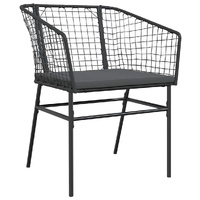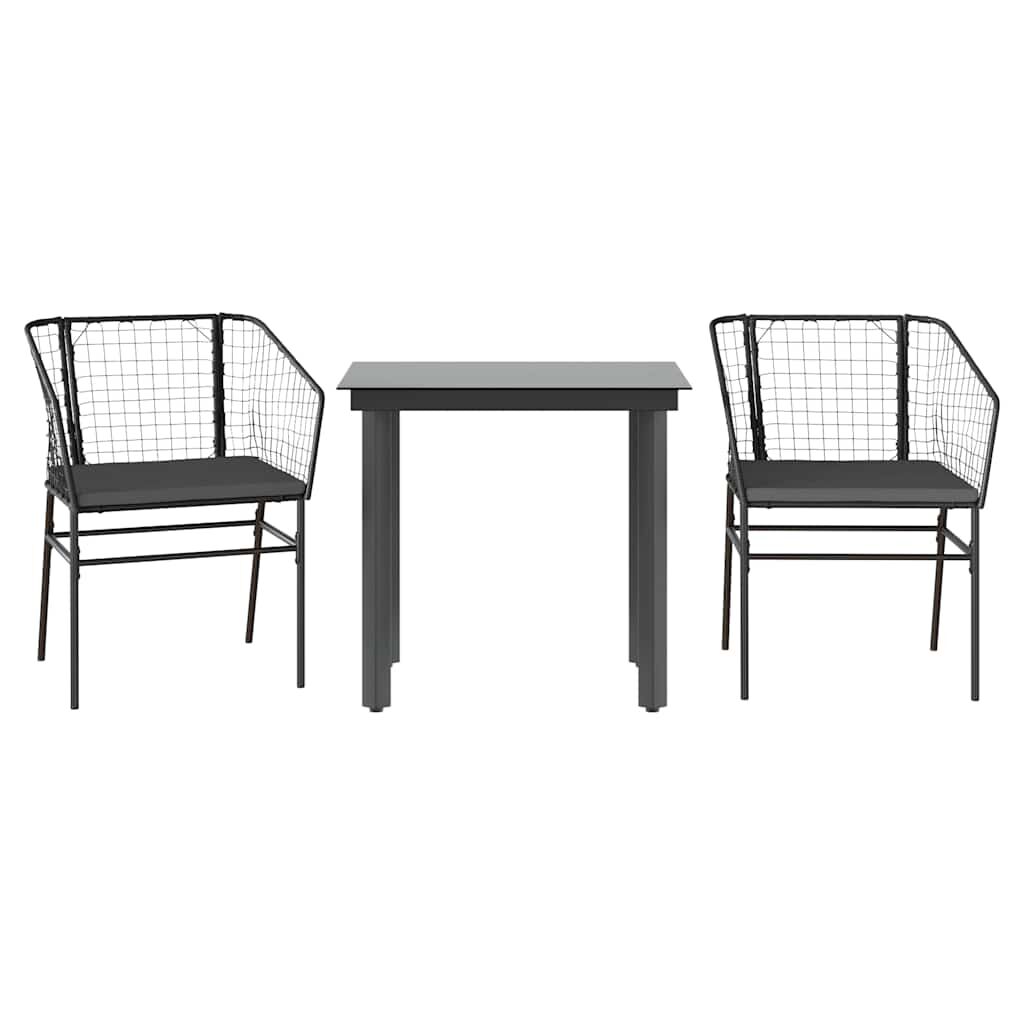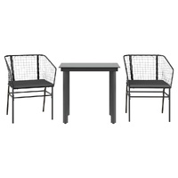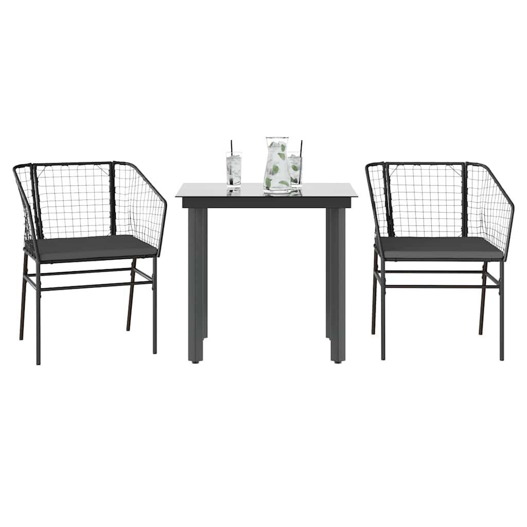 3 Piece Garden Dining Set with Cushions Black Poly Rattan Glass