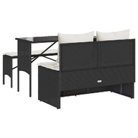 This garden dining set is a great choice for al fresco dining or just relaxing in the garden, backyard, or patio. Durable material: PE rattan, also known as poly rattan, is a strong, low-maintenance synthetic material that looks like natural rattan. It's lightweight, easy to clean, and commonly used for outdoor furniture due to its durability and weather-resistant properties.Glass tabletop: The outdoor table's top is made from strong and durable tempered glass, making it easy to clean with a damp cloth and adding a touch of elegance to your outdoor space.Comfortable seat experience: This outdoor furniture, complete with thickly padded cushions, offers a comfortable seating experience.Removable and washable cover: These seat cushions feature removable covers for easy washing and maintenance.Robust and stable frame: The powder-coated steel frame ensures that the garden furniture is strong and stable for daily outdoor use. Good to know:To make sure your outdoor furniture stays beautiful, we recommend protecting it with a waterproof cover.