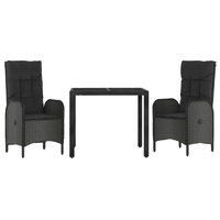 This trendy garden dining set, featuring an elegant and contemporary design, is a great choice for dining or relaxing in your garden. Weather-resistant material: PE rattan, also known as poly rattan, is weather resistant and easy to clean. It remains beautiful on the outside for a long period of time. It offers great quality, convenience and an aesthetic look.Sturdy frame: The powder-coated steel frames make the outdoor dining set sturdy and stable for daily outdoor use.Practical tabletop: The smooth tabletop of the garden table is made of tempered glass which is easy to clean with a damp cloth. Additionally, the sturdy tabletop is perfect for placing meals, drinks, and other decorative items.Reclining function: The garden chairs are specially designed with a reclining function so that you can adjust the backrest as per your comfort.Comfortable seat experience: The backrest adds extra seating comfort for the garden chair. Also, the thickly padded cushions provide comfort for your sitting time. Good to know:To make assembly as easy as possible, each product is delivered with a manual. Note:To make sure your outdoor furniture stays beautiful, we recommend protecting it with a waterproof cover.