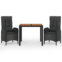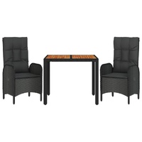 This trendy garden dining set, featuring an elegant and contemporary design, is a great choice for dining or relaxing in your garden. Weather-resistant material: PE rattan, also known as poly rattan, is weather resistant and easy to clean. It remains beautiful on the outside for a long period of time. It offers great quality, convenience and an aesthetic look.Sturdy frame: The powder-coated steel frames make the outdoor dining set sturdy and stable for daily outdoor use.Practical tabletop: The solid acacia wood tabletop is perfect for placing drinks, food and decorations. It's beautiful in appearance and easy to clean.Reclining function: The garden chairs are specially designed with a reclining function so that you can adjust the backrest as per your comfort.Comfortable seat experience: The backrest adds extra seating comfort for the garden chair. Also, the thickly padded cushions provide comfort for your sitting time. Good to know:To make assembly as easy as possible, each product is delivered with a manual. Note:To make sure your outdoor furniture stays beautiful, we recommend protecting it with a waterproof cover.