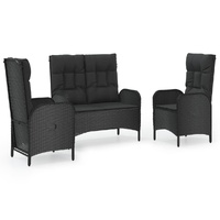 This trendy garden dining set, featuring an elegant and contemporary design, is a great choice for dining or relaxing in your garden. Weather-resistant material: PE rattan, also known as poly rattan, is weather resistant and easy to clean. It remains beautiful on the outside for a long period of time. It offers great quality, convenience and an aesthetic look.Sturdy frame: The powder-coated steel frames make the outdoor dining set sturdy and stable for daily outdoor use.Practical tabletop: The smooth tabletop of the garden table is made of tempered glass which is easy to clean with a damp cloth. Additionally, the sturdy tabletop is perfect for placing meals, drinks, and other decorative items.Reclining function: The garden chairs are specially designed with a reclining function so that you can adjust the backrest as per your comfort.Comfortable seat experience: The backrest adds extra seating comfort for the garden chair. Also, the thickly padded cushions provide comfort for your sitting time. Good to know:To make assembly as easy as possible, each product is delivered with a manual. Note:To make sure your outdoor furniture stays beautiful, we recommend protecting it with a waterproof cover.