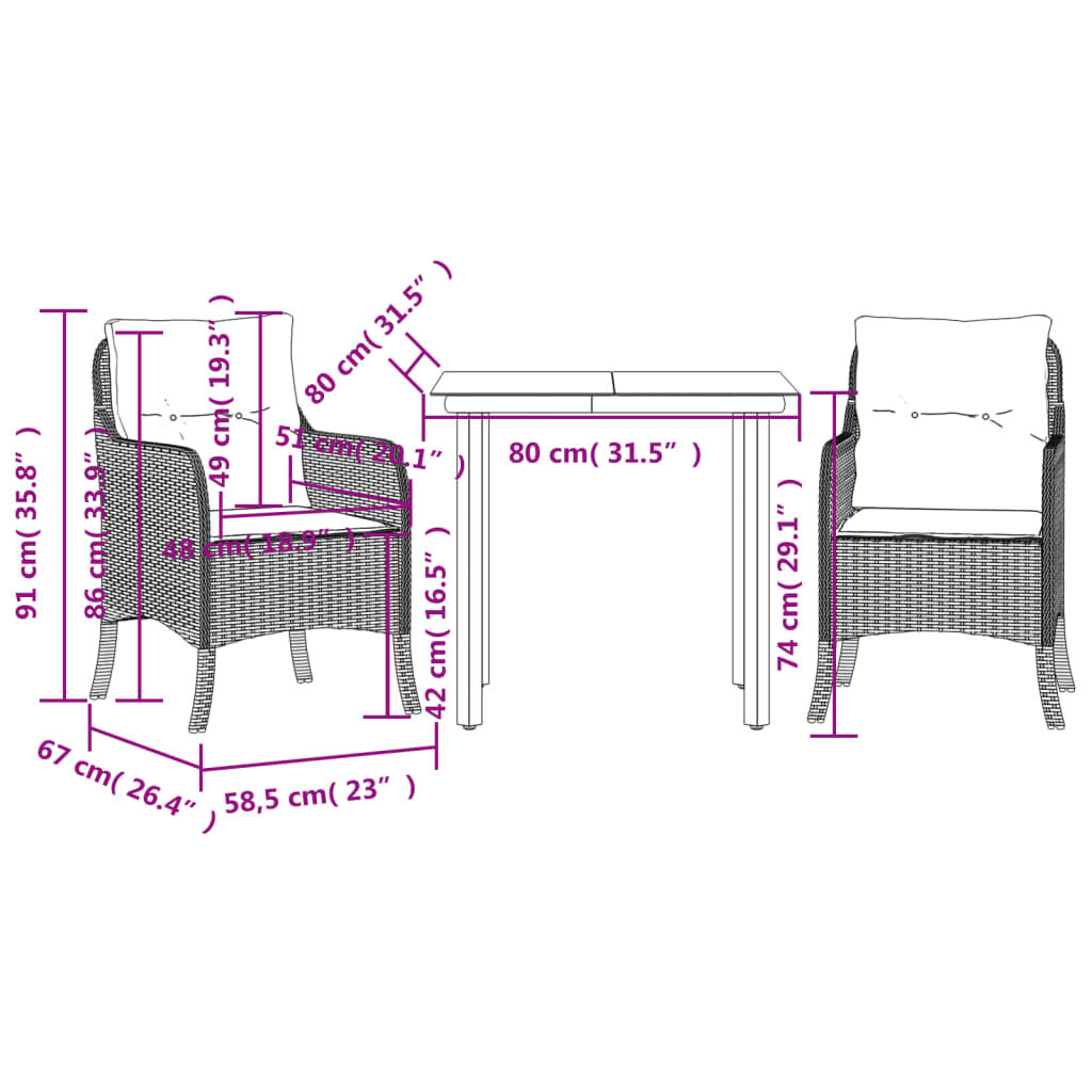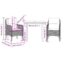 This garden dining set is a great choice for al fresco dining or just relaxing in the garden, backyard, or patio. Durable material: PE rattan, also known as poly rattan, is a strong, low-maintenance synthetic material that looks like natural rattan. It's lightweight, easy to clean, and commonly used for outdoor furniture due to its durability and weather-resistant properties.Comfortable seat experience: This outdoor furniture, complete with thickly padded cushions, offers a comfortable seating experience.Removable and washable cover: These seat cushions feature removable covers for easy washing and maintenance.Glass tabletop: The outdoor table's top is made from strong and durable tempered glass, making it easy to clean with a damp cloth and adding a touch of elegance to your outdoor space.Robust and stable frame: The powder-coated steel frame ensures that the garden furniture is strong and stable for daily outdoor use. Good to know:To make sure your outdoor furniture stays beautiful, we recommend protecting it with a waterproof cover.