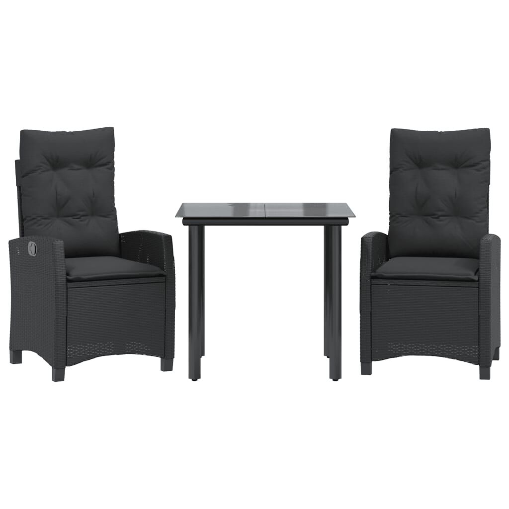 This garden dining set is a great choice for al fresco dining or just relaxing in the garden, backyard, or patio. Durable material: PE rattan, also known as poly rattan, is a strong, low-maintenance synthetic material that looks like natural rattan. It's lightweight, easy to clean, and commonly used for outdoor furniture due to its durability and weather-resistant properties. Adjustable backrest: This garden seat has a handle. You can adjust the backrest to any position by pulling the handle, and quickly return it to its original position.Glass tabletop: The outdoor table's top is made from strong and durable tempered glass, making it easy to clean with a damp cloth and adding a touch of elegance to your outdoor space. Comfortable seat experience: This outdoor furniture, complete with thickly padded cushions, offers a comfortable seating experience. Removable and washable cover: These seat cushions feature removable covers for easy washing and maintenance. Good to know:To make sure your outdoor furniture stays beautiful, we recommend protecting it with a waterproof cover.