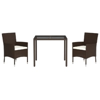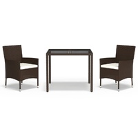 This stylish garden dining set provides you with a leisurely and comfortable time with your family and friends. Weather-resistant material: PE rattan, also known as poly rattan, is weather resistant and easy to clean. It remains beautiful on the outside for a long period of time. It offers great quality, convenience and an aesthetic look. Sturdy and stable frame: The powder-coated steel frame of the dining set ensures sturdiness and stability. Comfortable seat experience: The thickly padded cushions of the dining chairs provide the ultimate comfort for your sitting time.Practical table: The smooth tabletop of the dining table is made of tempered glass which is easy to clean with a damp cloth. Additionally, the sturdy tabletop is perfect for placing meals, drinks, and other decorative items.Flexible design: Thanks to the lightweight construction, these garden dining chairs are easy to move. Note:To make sure your outdoor furniture stays beautiful, we recommend protecting it with a waterproof cover.