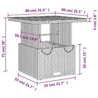 This garden dining set is a great choice for al fresco dining or just relaxing in the garden, backyard, or on the patio. Durable material: PE rattan, also known as poly rattan, is a strong, low-maintenance synthetic material that looks like natural rattan. It's lightweight, easy to clean, and commonly used for outdoor furniture due to its durability and weather-resistant properties.Adjustable backrest: This garden seat has a handle. You can adjust the backrest to any position by pulling the handle, and quickly return it to its original position.Adjustable tabletop: The tabletop can be lifted to make the table higher, which transforms the outdoor table from a coffee table to a dining table. It's perfect for having guests over or eating meals outside.Removable and washable cover: These seat cushions feature removable covers for easy washing and maintenance. The back cushions have a flap at the back for easy attachment to the backrests.Comfortable seat experience: This outdoor furniture, complete with thickly padded cushions, offers a comfortable seating experience. Good to know:To make sure your outdoor furniture stays beautiful, we recommend protecting it with a waterproof cover.
