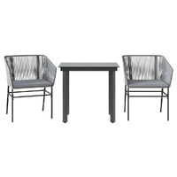 This garden dining set is a great choice for al fresco dining or just relaxing in the garden, backyard, or on the patio. Durable material: PE rattan, also known as poly rattan, is a strong, low-maintenance synthetic material that looks like natural rattan. It's lightweight, easy to clean, and commonly used for outdoor furniture due to its durability and weather-resistant properties.Robust and stable frame: The powder-coated steel frame is strong, stable, durable, and resistant to corrosion and harsh weather, ensuring long-lasting performance.Practical backrest and armrest: This garden chair features a backrest and two armrests that offer optimal support and comfort for users.Removable and washable cover: These seat cushions feature removable covers for easy washing and maintenance.Glass tabletop: The outdoor table's top is made from strong and durable tempered glass, making it easy to clean with a damp cloth and adding a touch of elegance to your outdoor space. Good to know:To make sure your outdoor furniture stays beautiful, we recommend protecting it with a waterproof cover.