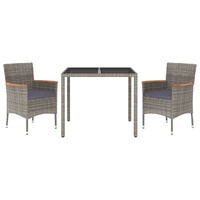 This stylish garden dining set provides you with a leisurely and comfortable time with your family and friends. Durable material: PE rattan, also known as poly rattan, is weather resistant and easy to clean. It remains beautiful on the outside for a long period of time. It offers great quality, convenience and an aesthetic look. Sturdy and stable frame: The powder-coated steel frame of the dining set ensures sturdiness and stability. Comfortable seat experience: Designed with backrests and armrests, these outdoor dining chairs provide maximum comfort. The thickly padded cushions of the dining chairs also provide extra comfort while sitting. Sturdy tabletop: The sturdy tabletop of the dining table is perfect for placing meals, drinks, vases, fruit bowls, or other decorative items. Note:To make sure your outdoor furniture stays beautiful, we recommend protecting it with a waterproof cover.