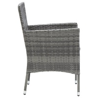 This garden dining set is a perfect combination of style and functionality and is meant to be the focal point of your garden, balcony or patio. Sturdy steel frame wrapped with weather-resistant PE rattan, the garden chairs are rust and mildew proof, providing years of quality relaxation. The outdoor table features a WPC tabletop, which is easy to clean and suitable for outdoor use. The aluminium frame also ensures stability and sturdiness. Additionally, the thickly padded cushions provide ultimate comfort during your sitting time. This patio dining set is easy to move with the lightweight construction. Note: In order to extend the life of your outdoor furniture, we recommend you to clean it regularly and do not leave it outdoors without protection unnecessarily.Clean: Use a mild soap solution.Storing: If possible, store in a cool, dry place indoors. If the product is stored outdoors, protect it with a waterproof cover. Wipe and dry the excess water or snow from flat surfaces after a rain or snowfall. Allow sufficient air circulation to avoid moisture-related damage.