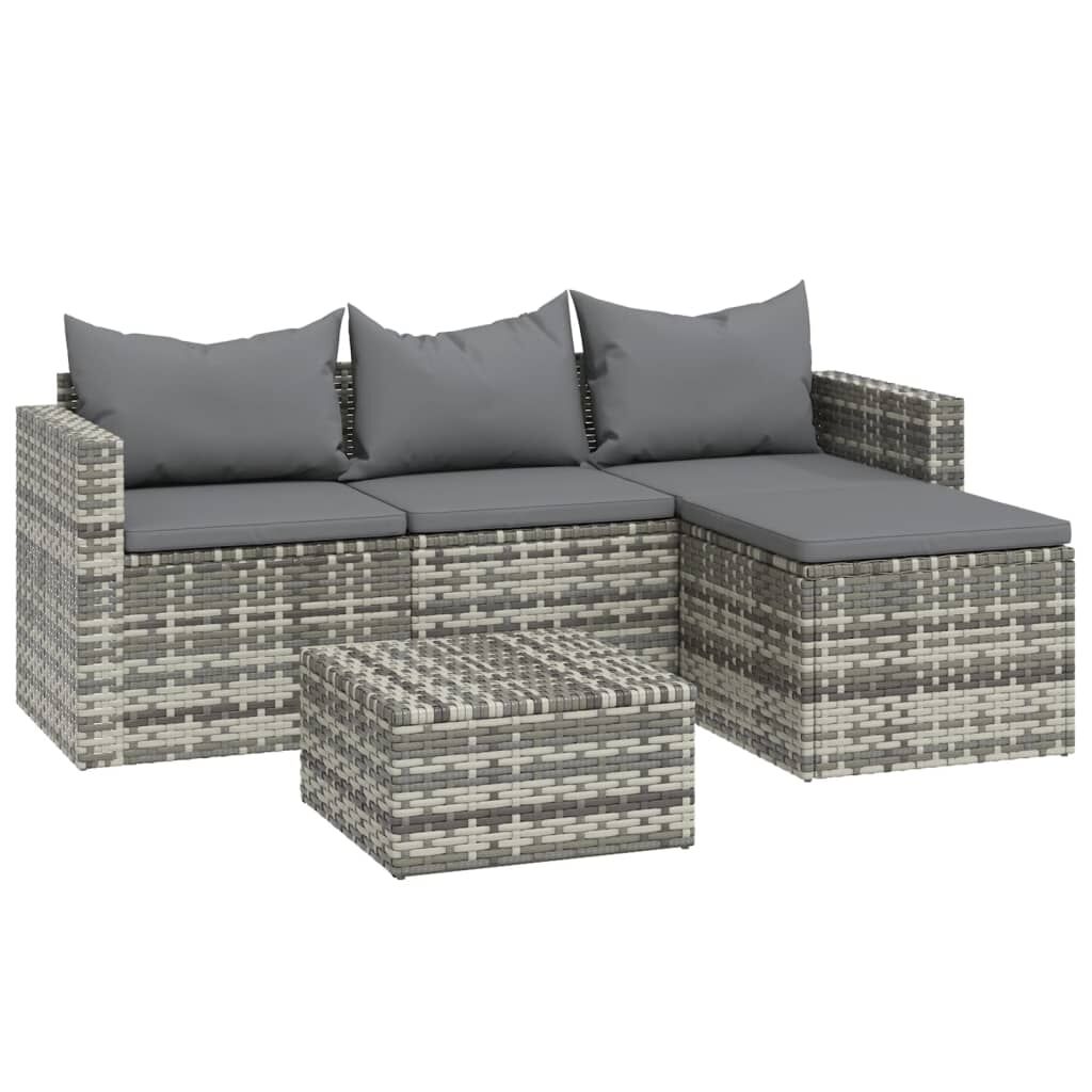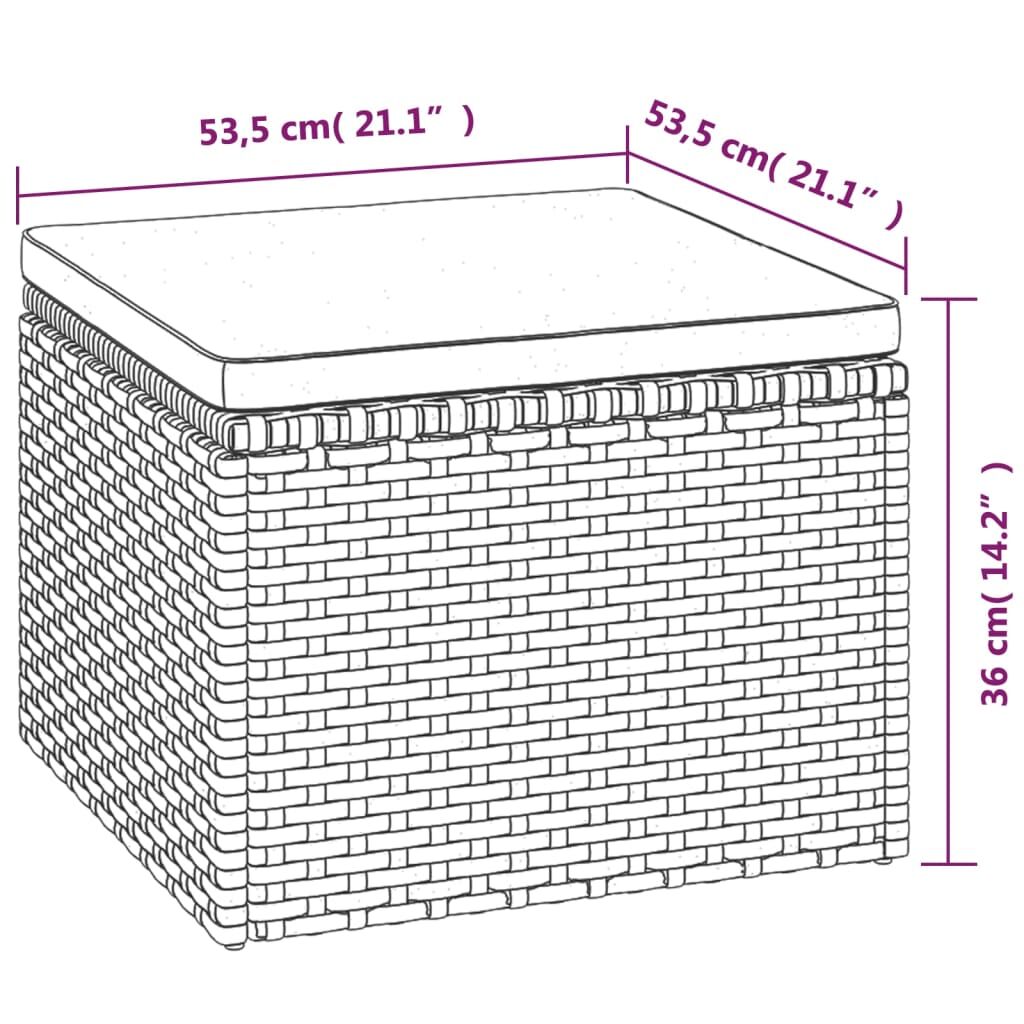 This trendy garden lounge set, featuring an elegant and contemporary design, is a great choice for relaxing in your garden. Durable material: PE rattan, also known as poly rattan, is weather resistant and easy to clean. It remains beautiful on the outside for a long period of time. It's more economical than other materials, while offering great quality, convenience and an aesthetic look.Stable frame: The powder-coated steel frame ensures sturdiness and stability.Practical design: The footstool is suitable for resting your feet when you lie on the sofa or offering you an additional seat. The table in the middle is great for keeping your necessities within your reach while seated.Comfortable seat experience: With the thickly padded seat and back cushions, the lounge set is highly comfortable. Good to know:To make assembly as easy as possible, each product is delivered with a manual. Note:To make sure your outdoor furniture stays beautiful, we recommend protecting it with a waterproof cover.