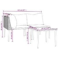 This trendy garden lounge set, featuring an elegant and contemporary design, is a great choice for relaxing in your garden. Durable material: PE rattan, also known as poly rattan, is weather resistant and easy to clean. It remains beautiful on the outside for a long period of time. It's more economical than other materials, while offering great quality, convenience and an aesthetic look.Sturdy and stable frame: The steel frames make the lounge set sturdy and stable for daily outdoor use.Comfortable seat experience: With the thickly padded seat and back cushions, the outdoor lounge set is highly comfortable.Practical table: The sturdy table is perfect for placing meals, drinks, and other decorative items.Modular design: Each piece is easy to move around, which makes it easy for you to create different layouts that fit your needs. You can also find single items in our webshop to arrange your own furniture patterns. Note:To make sure your outdoor furniture stays beautiful, we recommend protecting it with a waterproof cover.