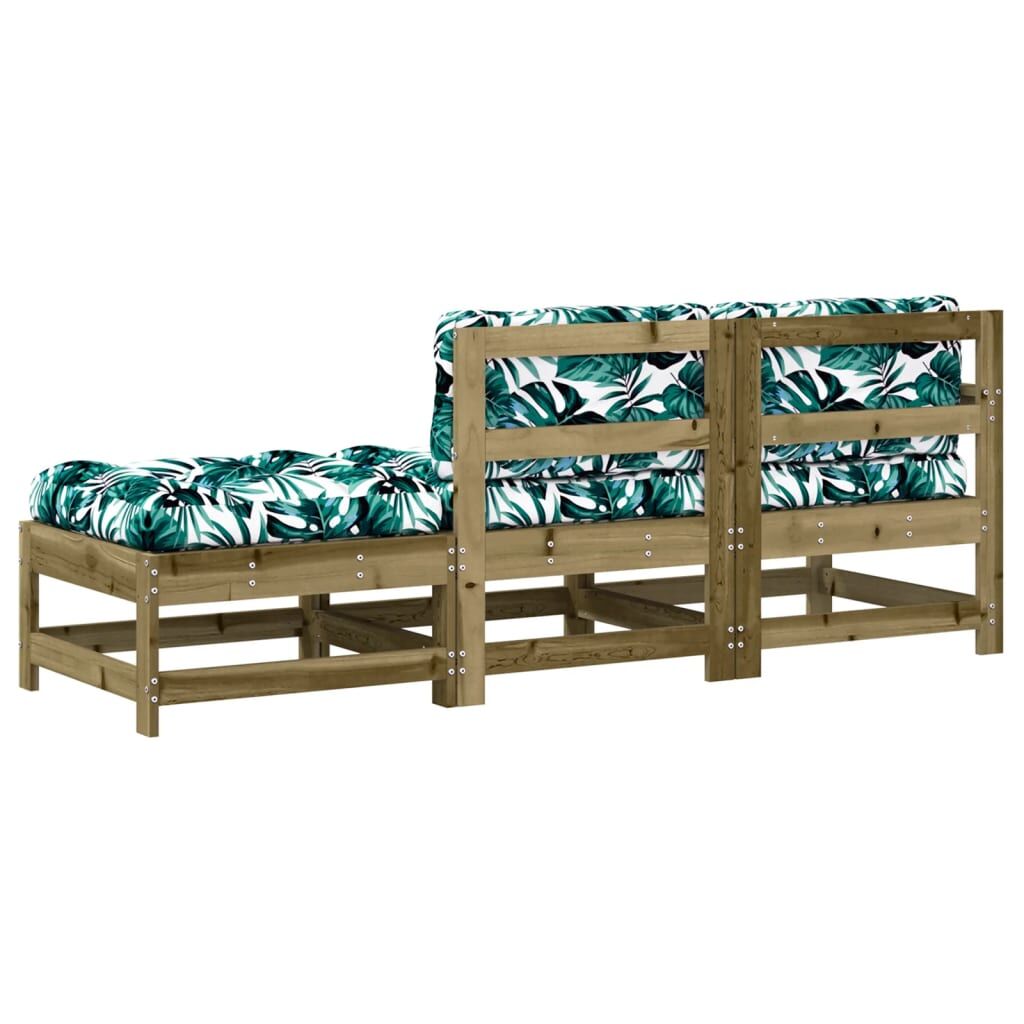 This wooden garden lounge set, standing out with the slatted design and soft cushions, will make a great addition to your garden, patio, or terrace for enjoying a cosy time with your family or friends. Impregnated wood: Solid pine wood is a beautiful natural material. Pine wood has a straight grain, and the knots give the material its signature, rustic look. Impregnation is a preservation process that is carried out by using autoclaves. The pressure-treatment increases resistance to decay and weather.Sturdy and stable frame: The wooden frames make the lounge set sturdy and stable for daily outdoor use.Comfortable seat experience: The backrest and armrest add extra seating comfort for the garden furniture set. Also, the thickly padded cushion provides comfort for your sitting time.Modular design: The sofa set is flexible and easy to move around. You can combine it with other modular segments in the webshop to create your own personal garden lounge set configurations! Good to know:To make sure your outdoor furniture stays beautiful, we recommend protecting it with a waterproof cover.
