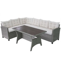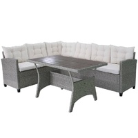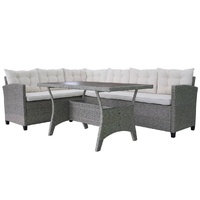 This outdoor sofa set will be great for lounging or al fresco dining in the garden, or on the balcony or patio. The powder-coated steel frames make the table and sofas strong and sturdy, and thanks to their lightweight construction, all items are easy to move. Thanks to the weather-resistant and waterproof PE rattan, the sofa set is easy to clean. The thick, soft cushions are highly comfortable. The easy-to-clean polyester seat cushion covers can be removed and washed. Delivery includes 1 table, 2 sofas, 7 back pillows, and 2 seat cushions. Note: We recommend covering the set in the rain, snow and frost.