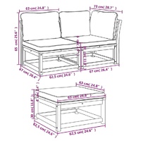 This wooden garden lounge set with cushions has an elegant design and is a great choice for relaxing and enjoying in the garden or patio. Solid acacia wood: Solid acacia wood is a beautiful natural material. Acacia wood is a tropical hardwood, which is dense, sturdy, and durable.Comfortable seat experience: The backrest and the thickly-padded cushions make the garden sofa set more comfortable to sit on.Slatted design: The slatted design of the wooden lounge set effectively prevents water from pooling, ensuring that the seat remains dry and free from potential rot.Modular design: This outdoor furniture set has a modular design, making it completely flexible and easy to move around, so you can create a customised outdoor furniture arrangement. Good to know:To make sure your outdoor furniture stays beautiful, we recommend protecting it with a waterproof cover.