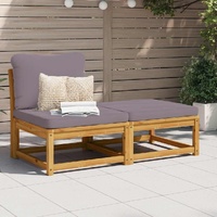 This wooden garden lounge set with cushions has an elegant design and is a great choice for relaxing and enjoying in the garden or patio. Solid acacia wood: Solid acacia wood is a beautiful natural material. Acacia wood is a tropical hardwood, which is dense, sturdy, and durable.Comfortable seat experience: The backrest and the thickly-padded cushions make the garden sofa set more comfortable to sit on.Slatted design: The slatted design of the wooden lounge set effectively prevents water from pooling, ensuring that the seat remains dry and free from potential rot.Modular design: This outdoor furniture set features a modular design, making it completely flexible and easy to move around to suit any setting. You can combine it with other modular segments available in the drop-down menu to create your own personal garden lounge set configurations! Good to know:To make sure your outdoor furniture stays beautiful, we recommend protecting it with a waterproof cover.