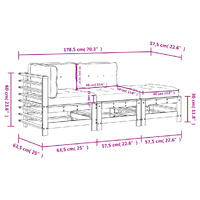This wooden garden lounge set, standing out with the slatted design and soft cushions, will make a great addition to your garden, patio, or terrace for enjoying a cosy time with your family or friends. Solid pine wood: Solid pine wood is a beautiful natural material. Pine wood has a straight grain, and the knots give the material its signature, rustic look.Sturdy and stable frame: The wooden frame makes the lounge set sturdy and stable for daily outdoor use.Comfortable seat experience: The backrest and armrest add extra seating comfort for the garden furniture set. Also, the thickly padded cushions provide comfort for your sitting time.Modular design: The sofa set is flexible and easy to move around. You can combine it with other modular segments in the webshop to create your own personal garden lounge set configurations! Good to know:To make sure your outdoor furniture stays beautiful, we recommend protecting it with a waterproof cover.