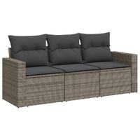 3 Piece Garden Sofa Set with Cushions Grey Poly Rattan