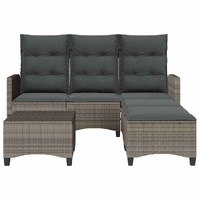 This L-shaped garden sofa set is the perfect addition to your garden, terrace, or patio, providing a comfortable and inviting space for chatting with family and friends or simply relaxing and enjoying the outdoors. Durable material: PE rattan, also known as poly rattan, is a strong, low-maintenance synthetic material that looks like natural rattan. It's lightweight, easy to clean, and commonly used for outdoor furniture due to its durability and weather-resistant properties.Adjustable backrest: This outdoor furniture has a handle on each seat. You can adjust the backrest to any position by pulling the handle, and quickly return it to its original position.Comfortable seat experience: This outdoor furniture, complete with thickly padded cushions, offers a comfortable seating experience.Removable and washable cover: These seat cushions feature removable covers for easy washing and maintenance.Robust and stable frame: The powder-coated steel frame ensures that the garden furniture is strong and stable for daily outdoor use. Good to know:To make sure your outdoor furniture stays beautiful, we recommend protecting it with a waterproof cover.