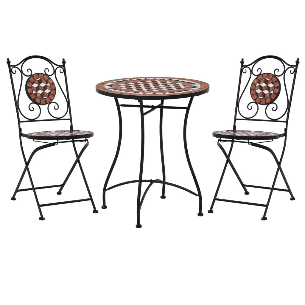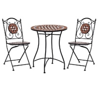 $291.39Add a romantic touch to your garden, patio, or balcony with this mosaic bistro set. It will be a great pleasure to chat with your friends or have a cuppa while relaxing on this decorative yet functional garden furniture set. Thanks to its strong powder-coated iron frame and ceramic tiles, our table and chairs are sturdy, durable, and easy to clean. Delivery includes 1 table and 2 chairs. Please note this set is not suitable to be left outside in cold condition.
