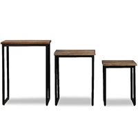 This cool, industrial coffee table set will make a timeless accessory for your home. The tables' solid wood tops provide a stable and secure surface on which you can place your drinks, vases, fruit bowls or ornaments. They can also be used as side tables or bedside tables. This coffee table set is made of reclaimed teak, which means that every piece of furniture is unique and slightly different from the next. Reclaimed teak is solid, stable, durable and beautiful. The strong steel legs make the nesting tables very sturdy and durable and add to their spectacular industrial style. Delivery includes 3 coffee tables in different sizes. Assembly is easy. Important note: Colours vary from piece to piece, making each of our coffee tables unique. The delivery is random, ensuring the exclusivity and individuality of your product.
