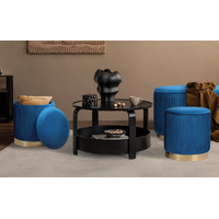 La Bella 3 Piece Set Storage Ottoman Blanket Box Velvet Padded Bench Stool FAYE - Blue