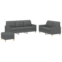 This sofa set is an excellent place for chatting, reading, watching TV or just relaxing. It is meant to be a focal point in your home. Durable fabric: The fabric features a simple and clean look while remaining breathable and long-lasting.Sturdy and stable frame: The plywood and metal frame of the sofa seating ensures sturdiness and stability.Comfortable seat experience: The sofa is highly comfortable with the thickly padded seat, armrests and back pillow.Versatile footstool: The footstool is suitable for resting your feet when you lie on a sofa, or offering you an additional seat in your room. Additionally, the simple design and compact size make it ideal for almost all your living spaces.