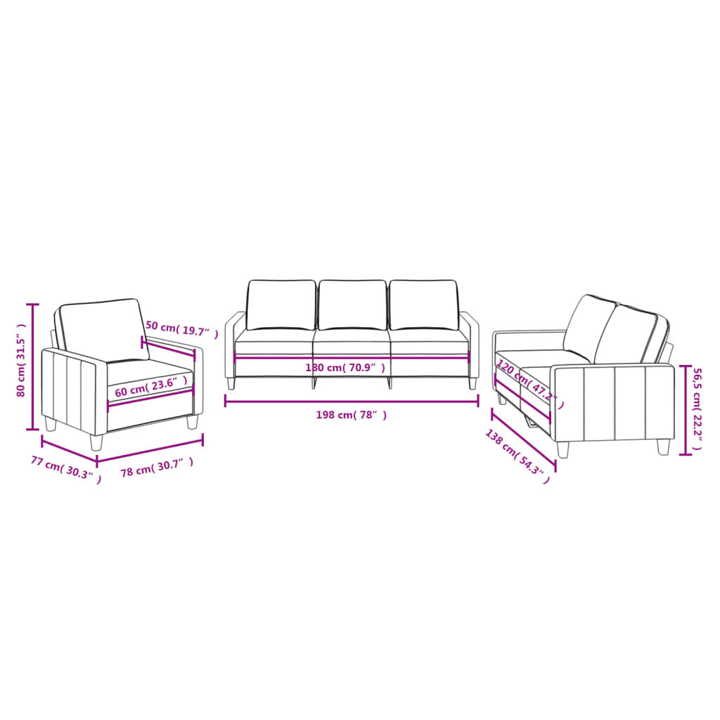 This sofa set is an excellent place for chatting, reading, watching TV or just relaxing. It is meant to be a focal point in your home. Durable fabric: The fabric features a simple and clean look while remaining breathable and long-lasting.Sturdy and stable frame: The plywood and metal frame of the sofa seating ensures sturdiness and stability.Comfortable seat experience: The sofa is highly comfortable with the thickly padded seat, armrests and back pillow.Eye-catching design: Featuring a simple yet modern design, this living room seating is meant to be an eye-catcher in your room.