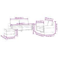 This sofa set is an excellent place for chatting, reading, watching TV or just relaxing. It is meant to be a focal point in your home. Soft velvet: Velvet is a soft and comfortable fabric that feels nice against the skin.Sturdy and stable frame: The plywood and metal frame of the sofa seating ensures sturdiness and stability.Comfortable seat experience: The sofa is highly comfortable with the thickly padded seat, armrests and back pillow.Versatile footstool: The footstool is suitable for resting your feet when you lie on a sofa, or offering you an additional seat in your room. Additionally, the simple design and compact size make it ideal for almost all your living spaces.