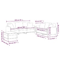 This sofa set is an excellent place for chatting, reading, watching TV or just relaxing. It is meant to be a focal point in your home. Durable fabric: The fabric features a simple and clean look while remaining breathable and long-lasting.Sturdy and stable frame: The plywood and metal frame of the sofa seating ensures sturdiness and stability.Comfortable seat experience: The sofa is highly comfortable with the thickly padded seat, armrests, and back pillow.Practical couch pillows: These square throw pillows not only spruce up your decor but can also add extra comfort when you are seated or lying.Versatile footstool: The footstool is suitable for resting your feet when you lie on a sofa or offering you an additional seat in your room. Additionally, the simple design and compact size make it ideal for almost all your living spaces.