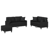 This sofa set is an excellent place for chatting, reading, watching TV or just relaxing. It is meant to be a focal point in your home. Durable faux leather: Premium faux leather is a highly durable material. It is resistant to stain, making it easy to clean with a damp cloth. The smooth surface also gives a luxurious look and the beauty of real leather.Sturdy and stable frame: The plywood and metal frame of the sofa seating ensures sturdiness and stability.Comfortable seat experience: The sofa is highly comfortable with the thickly padded seat, armrests and back pillow.Practical couch pillows: These square throw pillows not only spruce up your decor, but can also add extra comfort when you are seated or lying.Versatile footstool: The footstool is suitable for resting your feet when you lie on a sofa, or offering you an additional seat in your room. Additionally, the simple design and compact size make it ideal for almost all your living spaces.