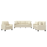 This sofa set is an excellent place for chatting, reading, watching TV or just relaxing. It is meant to be a focal point in your home. Durable faux leather: Premium faux leather is a highly durable material. It is resistant to stain, making it easy to clean with a damp cloth. The smooth surface also gives a luxurious look and the beauty of real leather.Sturdy and stable frame: The plywood and metal frame of the sofa seating ensures sturdiness and stability.Comfortable seat experience: The sofa is highly comfortable with the thickly padded seat, armrests and back pillow.Practical couch pillows: These square throw pillows not only spruce up your decor, but can also add extra comfort when you are seated or lying.