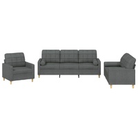 3 Piece Sofa Set with Pillows Dark Grey Fabric