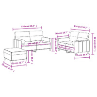 This sofa set is an excellent place for chatting, reading, watching TV or just relaxing. It is meant to be a focal point in your home. Durable fabric: The fabric features a simple and clean look while remaining breathable and long-lasting.Sturdy and stable frame: The plywood and metal frame of the sofa seating ensures sturdiness and stability.Comfortable seat experience: The sofa is highly comfortable with the thickly padded seat, armrests and back pillow.Practical roll pillows: These cylinder pillows not only spruce up your decor, but can also add extra comfort when you are seated or lying.Versatile footstool: The footstool is suitable for resting your feet when you lie on a sofa, or offering you an additional seat in your room. Additionally, the simple design and compact size make it ideal for almost all your living spaces.