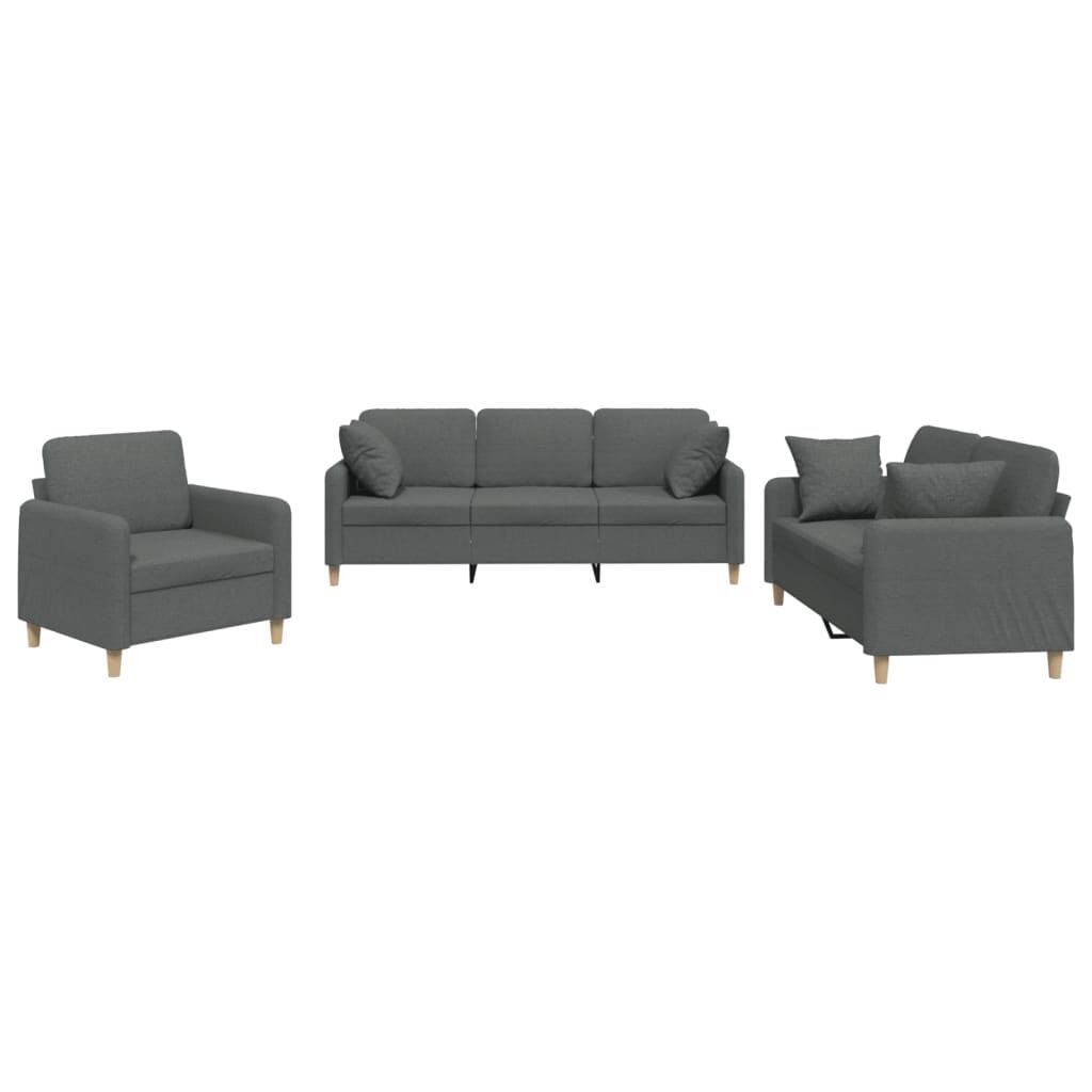 This sofa set is an excellent place for chatting, reading, watching TV or just relaxing. It is meant to be a focal point in your home. Durable fabric: The fabric features a simple and clean look while remaining breathable and long-lasting.Sturdy and stable frame: The plywood and metal frame of the sofa seating ensures sturdiness and stability.Comfortable seat experience: The sofa is highly comfortable with the thickly padded seat, armrests and back cushions.Practical couch pillows: These square throw pillows not only spruce up your decor but can also add extra comfort when you are seated or lying.