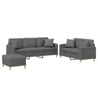 This sofa set is an excellent place for chatting, reading, watching TV or just relaxing. It is meant to be a focal point in your home. Durable fabric: The fabric features a simple and clean look while remaining breathable and long-lasting.Sturdy and stable frame: The plywood and metal frame of the sofa seating ensures sturdiness and stability.Comfortable seat experience: The sofa is highly comfortable with the thickly padded seat, armrests, and back pillow.Practical couch pillows: These square throw pillows not only spruce up your decor but can also add extra comfort when you are seated or lying.Versatile footstool: The footstool is suitable for resting your feet when you lie on a sofa or offering you an additional seat in your room. Additionally, the simple design and compact size make it ideal for almost all your living spaces.