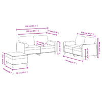 This sofa set is an excellent place for chatting, reading, watching TV or just relaxing. It is meant to be a focal point in your home. Soft velvet: Velvet is a soft and comfortable fabric that feels nice against the skin.Sturdy and stable frame: The plywood and metal frame of the sofa seating ensures sturdiness and stability.Comfortable seat experience: The sofa is highly comfortable with the thickly padded seat, armrests, and back pillow.Practical roll pillows: These cylinder pillows not only spruce up your decor but can also add extra comfort when you are seated or lying.Versatile footstool: The footstool is suitable for resting your feet when you lie on a sofa or offering you an additional seat in your room. Additionally, the simple design and compact size make it ideal for almost all your living spaces.