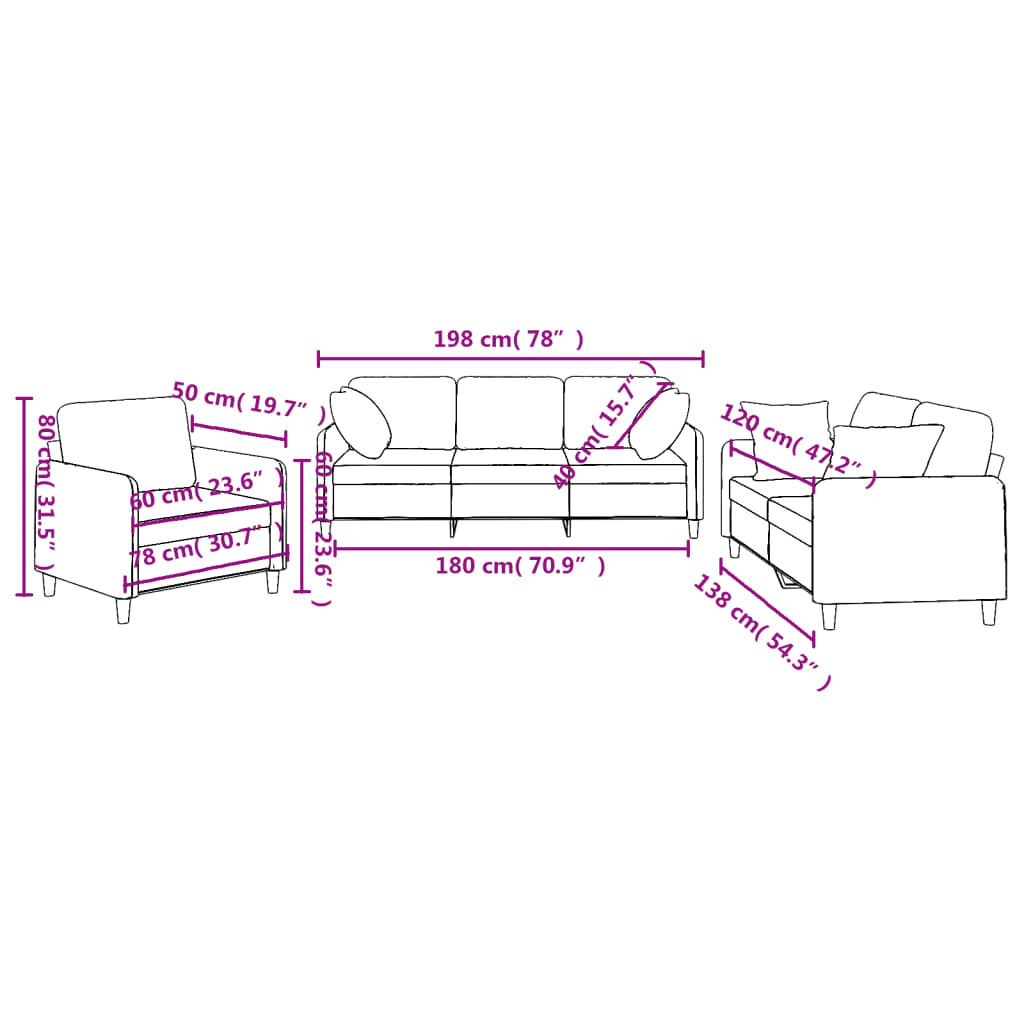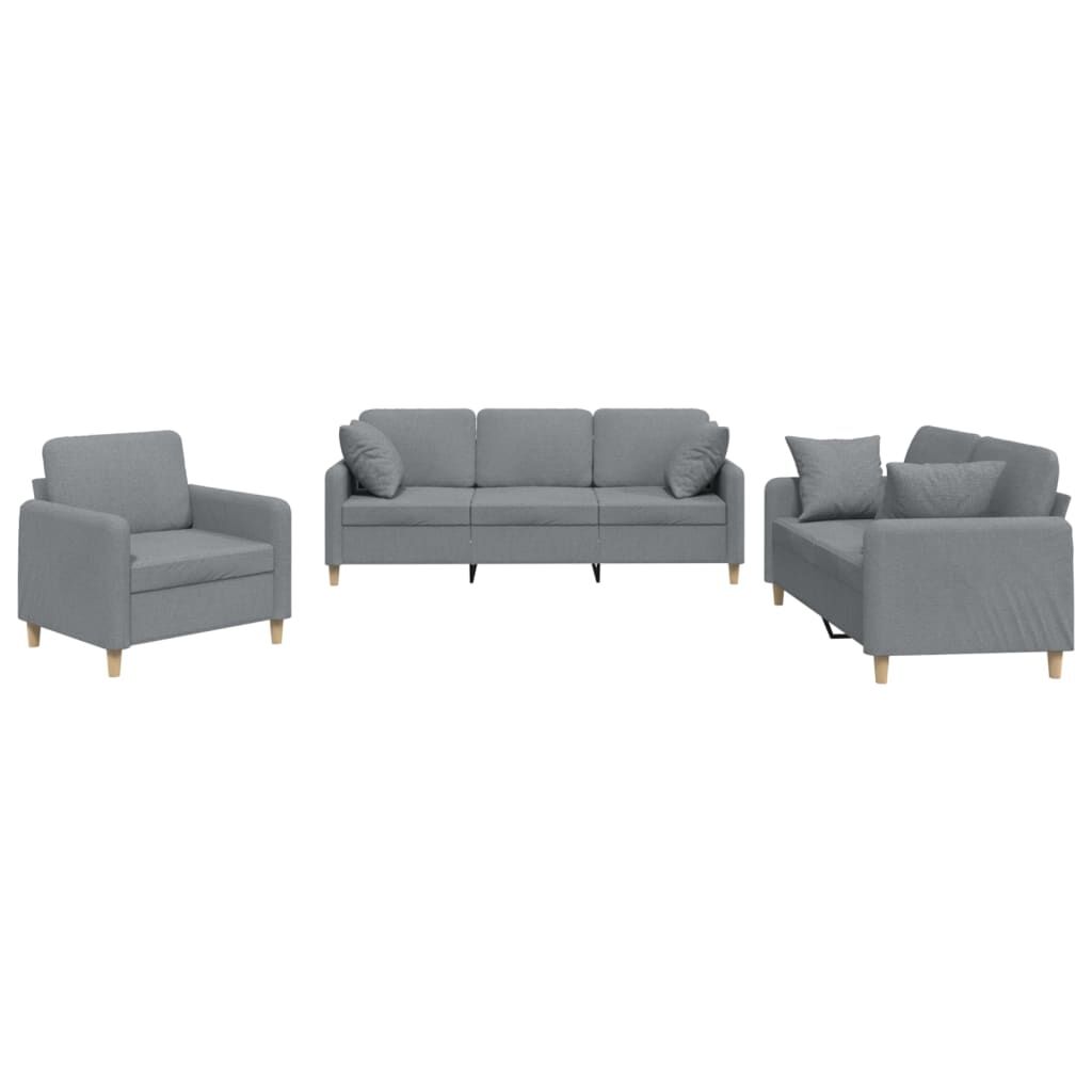 This sofa set is an excellent place for chatting, reading, watching TV or just relaxing. It is meant to be a focal point in your home. Durable fabric: The fabric features a simple and clean look while remaining breathable and long-lasting.Sturdy and stable frame: The plywood and metal frame of the sofa seating ensures sturdiness and stability.Comfortable seat experience: The sofa is highly comfortable with the thickly padded seat, armrests and back cushions.Practical couch pillows: These square throw pillows not only spruce up your decor but can also add extra comfort when you are seated or lying.