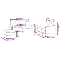 This sofa set is an excellent place for chatting, reading, watching TV or just relaxing. It is meant to be a focal point in your home. Soft velvet: Velvet is a soft and comfortable fabric that feels nice against the skin.Sturdy and stable frame: The plywood and metal frame of the sofa seating ensures sturdiness and stability.Comfortable seat experience: The sofa is highly comfortable with the thickly padded seat, armrests and back pillow.Practical couch pillows: These square throw pillows not only spruce up your decor but can also add extra comfort when you are seated or lying.Versatile footstool: The footstool is suitable for resting your feet when you lie on a sofa, or offering you an additional seat in your room. Additionally, the simple design and compact size make it ideal for almost all your living spaces.