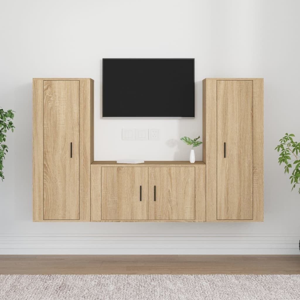 $249.05This classic TV cabinet set is designed to be a focal point of your room, featuring a trendy yet practical design. Sturdy material: The engineered wood is of exceptional quality with smooth surface and also features strength, stability and resistance to moisture. Made of engineered wood, these TV stands are easy to clean.Ample storage space: These TV units provide ample storage space to keep all your magazines, DVDs and any other items well organised.Wall-mounted design: The media cabinet doesn't take any floor space. You can hang it on the wall easily.Practical doors: Keep your essentials free from dust by hiding them behind the door of the media unit. Good to know:Screws and plugs for inside the wall are not included. We advise to find and use screws and plugs suitable specifically for your walls. If you're not sure, you can consult with a professional. Please read and follow each step of the instructions.