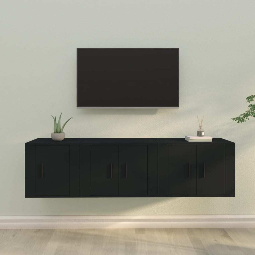 $162.61This classic TV cabinet set is designed to be a focal point of your room, featuring a trendy yet practical design. Sturdy material: The engineered wood is of exceptional quality with smooth surface and also features strength, stability and resistance to moisture. Made of engineered wood, these TV stands are easy to clean.Ample storage space: These TV units provide ample storage space to keep all your magazines, DVDs and any other items well organised.Wall-mounted design: These media cabinets don't take any floor space. You can hang them on the wall easily.Practical doors: Keep your essentials free from dust by hiding them behind the doors of the media units. Good to know:To make assembly as easy as possible, each product is delivered with a manual.Screws and plugs for inside the wall are not included. We advise to find and use screws and plugs suitable specifically for your walls. If you're not sure, you can consult with a professional. Please read and follow each step of the instructions.