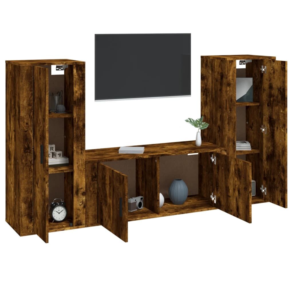 This classic TV cabinet set is designed to be a focal point of your room, featuring a trendy yet practical design. Sturdy material: The engineered wood is of exceptional quality with smooth surface and also features strength, stability and resistance to moisture. Made of engineered wood, these TV stands are easy to clean.Ample storage space: These TV units provide ample storage space to keep all your magazines, DVDs and any other items well organised.Wall-mounted design: The media cabinet doesn't take any floor space. You can hang it on the wall easily.Practical doors: Keep your essentials free from dust by hiding them behind the door of the media unit. Good to know:Screws and plugs for inside the wall are not included. We advise to find and use screws and plugs suitable specifically for your walls. If you're not sure, you can consult with a professional. Please read and follow each step of the instructions.