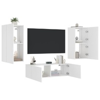 These TV wall cabinets with LED lights are the perfect solution for your living space to maximise space and keep the floor areas uncluttered. Durable material: The engineered wood is of exceptional quality with smooth surface and also features strength, stability and resistance to moisture. Made of engineered wood, these floating TV units are sturdy and durable.Ample storage space: The TV wall units have ample storage space to place your DVD players, books, magazines or other decorative items.RGB LED lights: The wall media units are equipped with vibrant RGB LED lights. With various customisable menus, you can effortlessly change the colour of the lights and even set them to adjust automatically.Wall-mounted design: These TV units with storage can be wall-mounted to add extra storage space. That way, you can maximise your floor space and keep the area clean. Good to know:Screws and plugs for inside the wall are not included. We advise to find and use screws and plugs suitable specifically for your walls. If you're not sure, you can consult with a professional. Please read and follow each step of the instructions.The product has a USB connector that requires a certified 5V USB power source (not included).