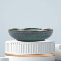 3 Pieces Reactive Glazed Ceramic Organic Fine Dinner Set with Plate and Bowl Earthy Aqua