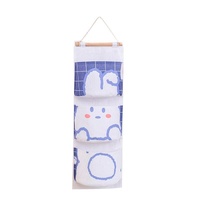 3 Pocket Hanging Storage Bag with Wooden Rod for Wall or Door Organisation - Bear