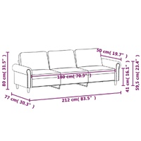 This 3-seater sofa is an excellent place for chatting, reading, watching TV or just relaxing. It is meant to be a focal point in your home. Soft velvet: Velvet is a soft, luxurious fabric that is recognised by its dense pile of evenly cut fibres that have a smooth nap. Velvet fabric features a distinctive soft feel, making it comfortable to touch.Sturdy and stable frame: The metal frame of the upholstered sofa ensures sturdiness and stability.Comfortable seat experience: The sofa is highly comfortable with the thickly padded seats, armrests and back pillows.Eye-catching design: Featuring a simple yet modern design, this couch is meant to be an eye-catcher in your room.