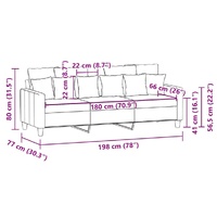 This 3-seater sofa is an excellent place for chatting, reading, watching TV or just relaxing. It is meant to be a focal point in your home. Durable fabric: The fabric features a simple and clean look while remaining breathable and long-lasting.Sturdy and stable frame: The metal frame of the upholstered sofa ensures sturdiness and stability.Comfortable seat experience: The sofa is highly comfortable with the thickly padded seats, armrests and back pillows.Eye-catching design: Featuring a simple yet modern design, this couch is meant to be an eye-catcher in your room.