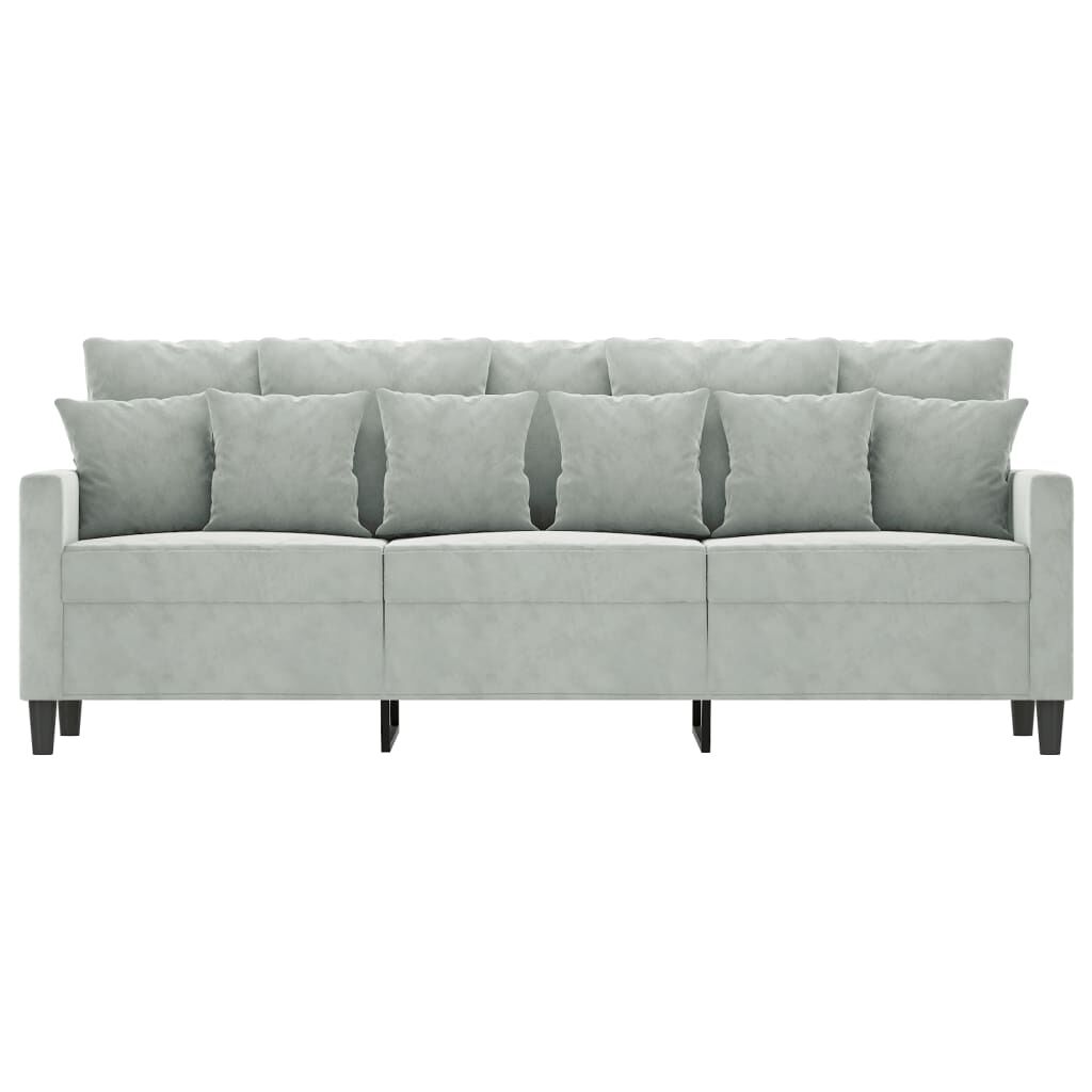 This 3-seater sofa is an excellent place for chatting, reading, watching TV or just relaxing. It is meant to be a focal point in your home. Soft velvet: Velvet is a soft, luxurious fabric that is recognised by its dense pile of evenly cut fibres that have a smooth nap. Velvet fabric features a distinctive soft feel, making it comfortable to touch.Sturdy and stable frame: The metal frame of the upholstered sofa ensures sturdiness and stability.Comfortable seat experience: The sofa is highly comfortable with the thickly padded seats, armrests and back pillows.Eye-catching design: Featuring a simple yet modern design, this couch is meant to be an eye-catcher in your room.