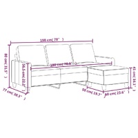 This 3-seater sofa with footstool is an excellent place for chatting, reading, watching TV or just relaxing. It is meant to be a focal point in your home. Durable faux leather: Premium faux leather is a highly durable material. It is resistant to stain, making it easy to clean with a damp cloth. The smooth surface also gives a luxurious look and the beauty of real leather.Sturdy and stable frame: The plywood and metal frame of the sofa with footstool ensures sturdiness and stability.Comfortable seat experience: The armchair is highly comfortable with the thickly padded seats, armrests and back pillows.Versatile footstool: The stool is suitable for resting your feet when you lie on a sofa or recliner, or offering you an additional seat in your room. Additionally, the simple design and compact size make it ideal for almost all your living spaces.Eye-catching design: Featuring a simple yet modern design, this sofa with footstool is meant to be an eye-catcher in your room.